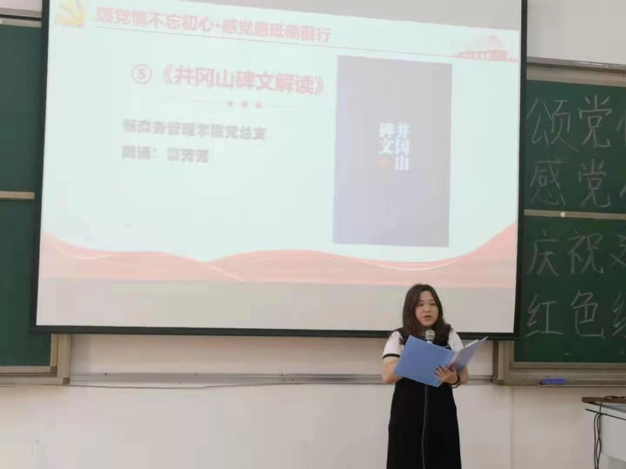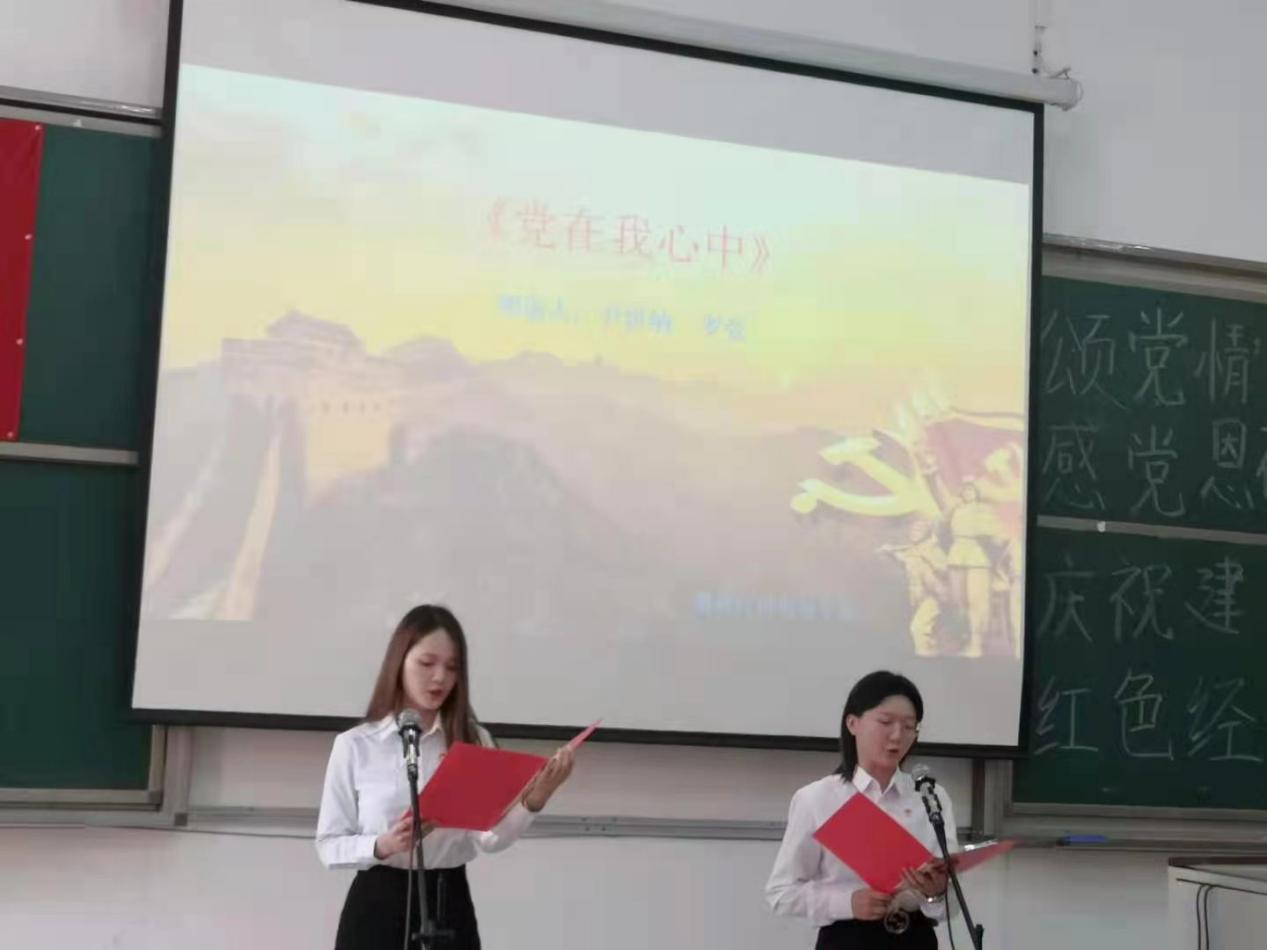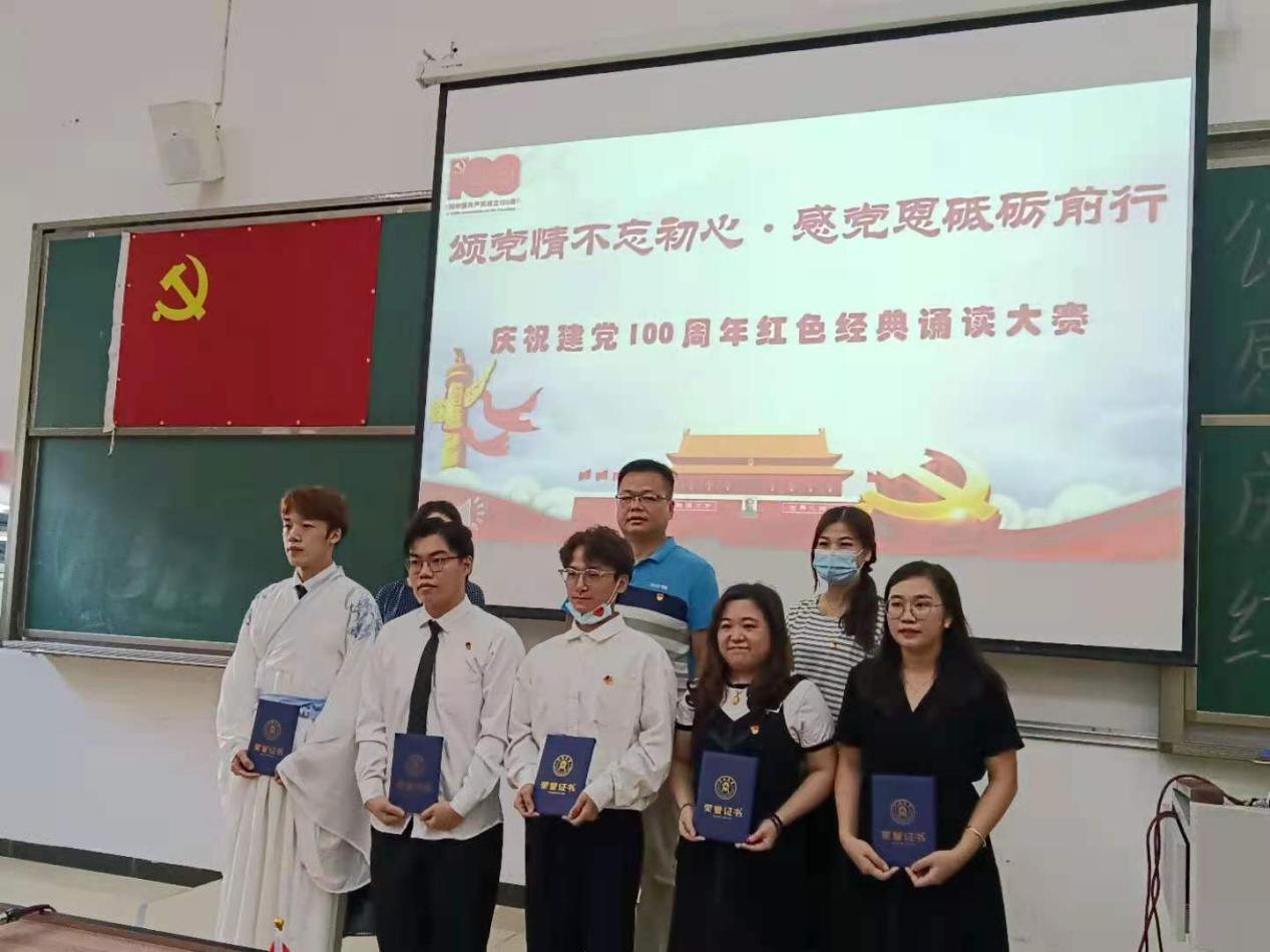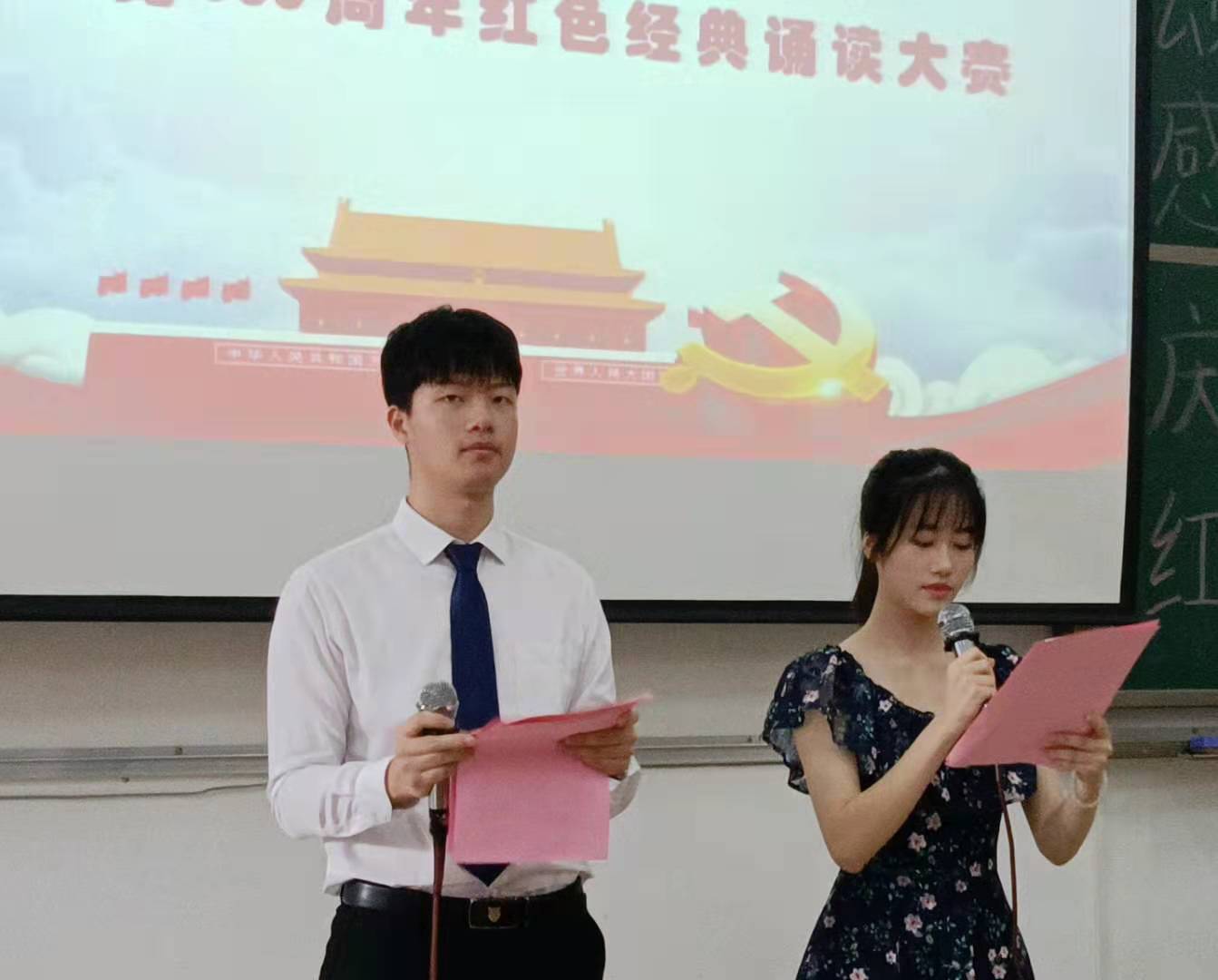 为庆祝建党百年,传承红色基因,为展现华贸人的精神风貌和良好素质,培养学生热爱祖国、热爱人民、热爱家乡、热爱生活的真挚情感。由校党委主办、新商务外语学院承办的“颂党情不忘初心,感党恩砥砺前行”红色经典诵读大赛于2021年6月9号下午在3-103教室举行。本次大赛由苏佩琦、曾茜纳同学主持。