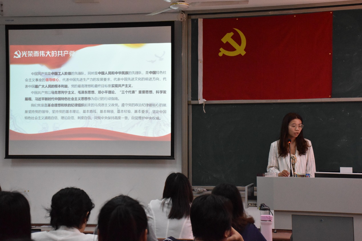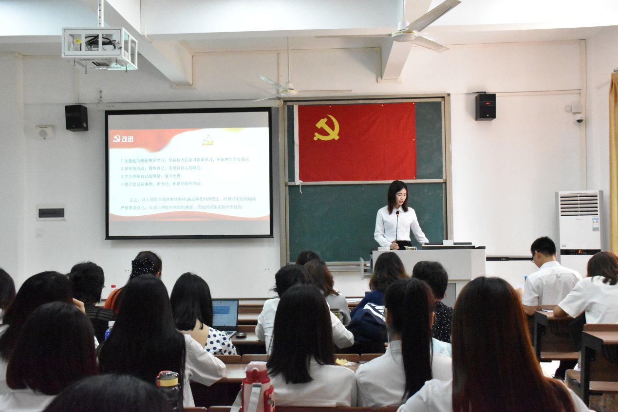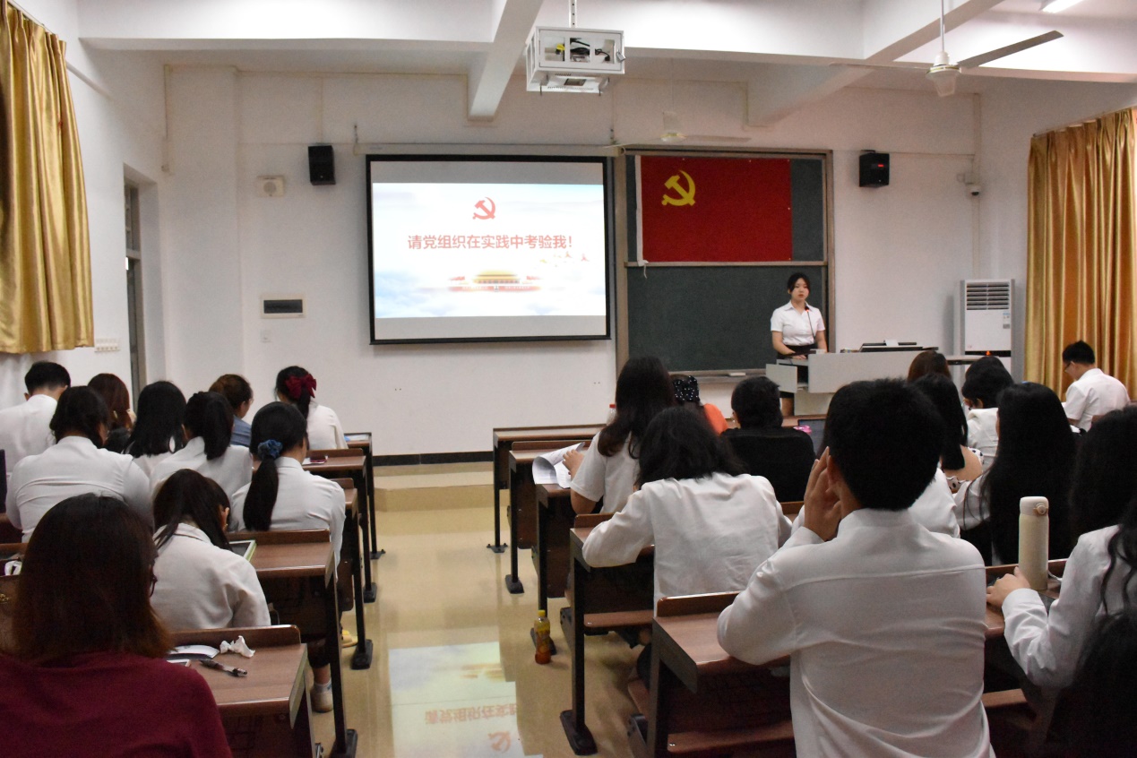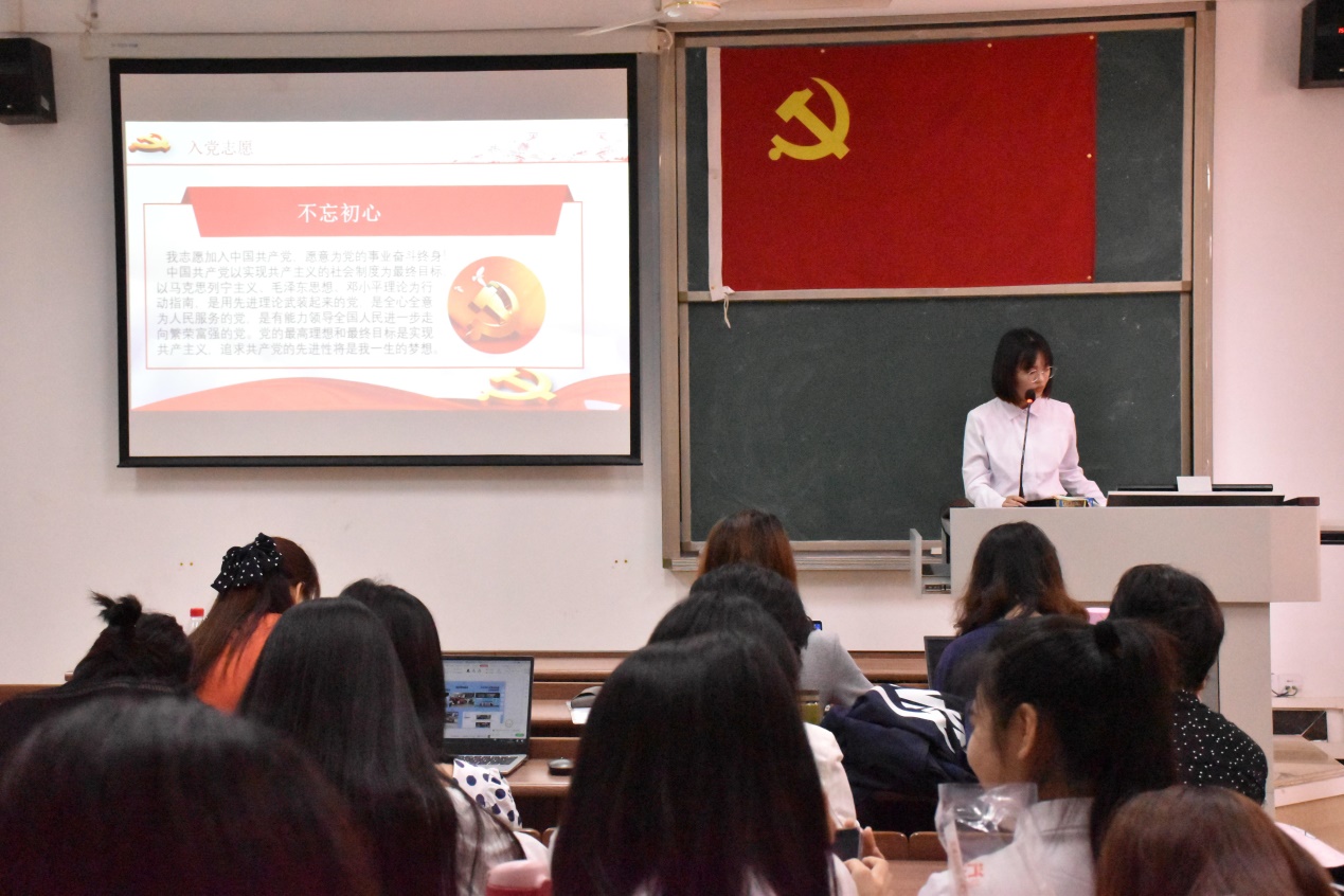 会议开始,谢老师首先宣读了23名发展对象的名单,并详细阐述了会议议程。紧接着,李东卫老师、伍嘉慧同学等23名发展对象依次上台,向与会人员宣读《入党志愿书》,并介绍其个人基本情况,陈述了自身成为积极分子以来在政治理论学习、志愿服务、特别是学习党史后的所思所想所为,表明了入党动机和决心;入党介绍人也针对发展对象在政治、思想、学习、生活上的表现给予客观的评价,针对其需要改进完善的地方,提出了诚恳的建议;发展对象宣读《入党志愿书》,并介绍其个人基本情况后,教师党支部组织委员邓黎、学生党支部组织委员田婷婷老师分别向全体党员汇报了申请人政审及群众座谈会情况;然后由在座党员进行抽题提问,问题以学习强国的内容为依据,包含了党章、习近平系列讲话精神、时事热点和党史等方面知识,发展对象对相关问题进行答辩;与会的党员同志也进行了充分的讨论,认为发展对象入党动机端正,能用党章规定的党员条件严格要求自己,在工作、学习方面能起到模范带头作用,具有良好的群众基础,但在政治理论知识还不够扎实,需继续加强学习;教师党支部及学生党支部分别大会采取无记名投票表决,同意批准李东卫老师、伍嘉慧同学等23名发展对象发展成为中共预备党员;各发展对象对组织的认可表示感谢,并表明决心:积极学习、努力工作,积极接受党组织的考察。