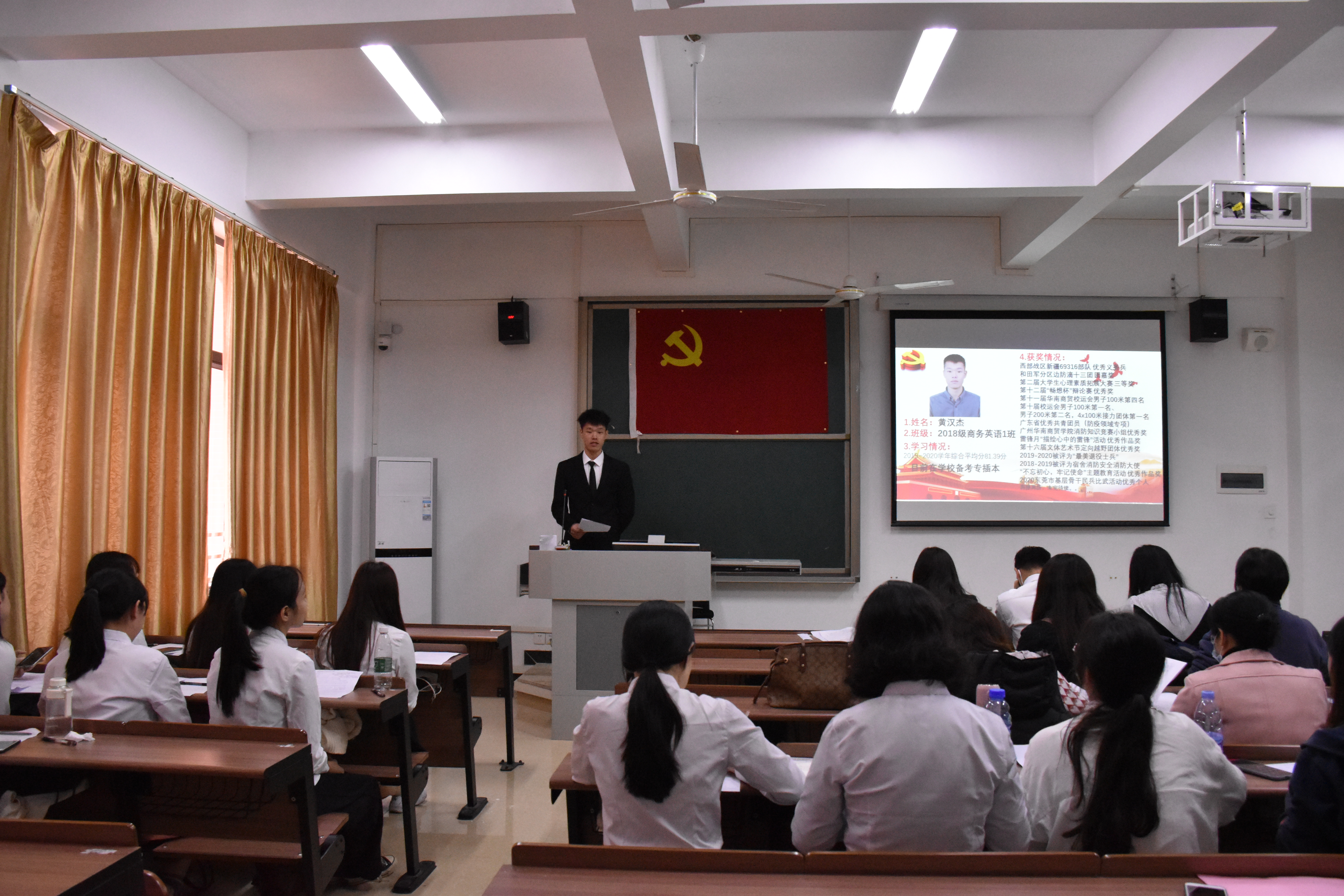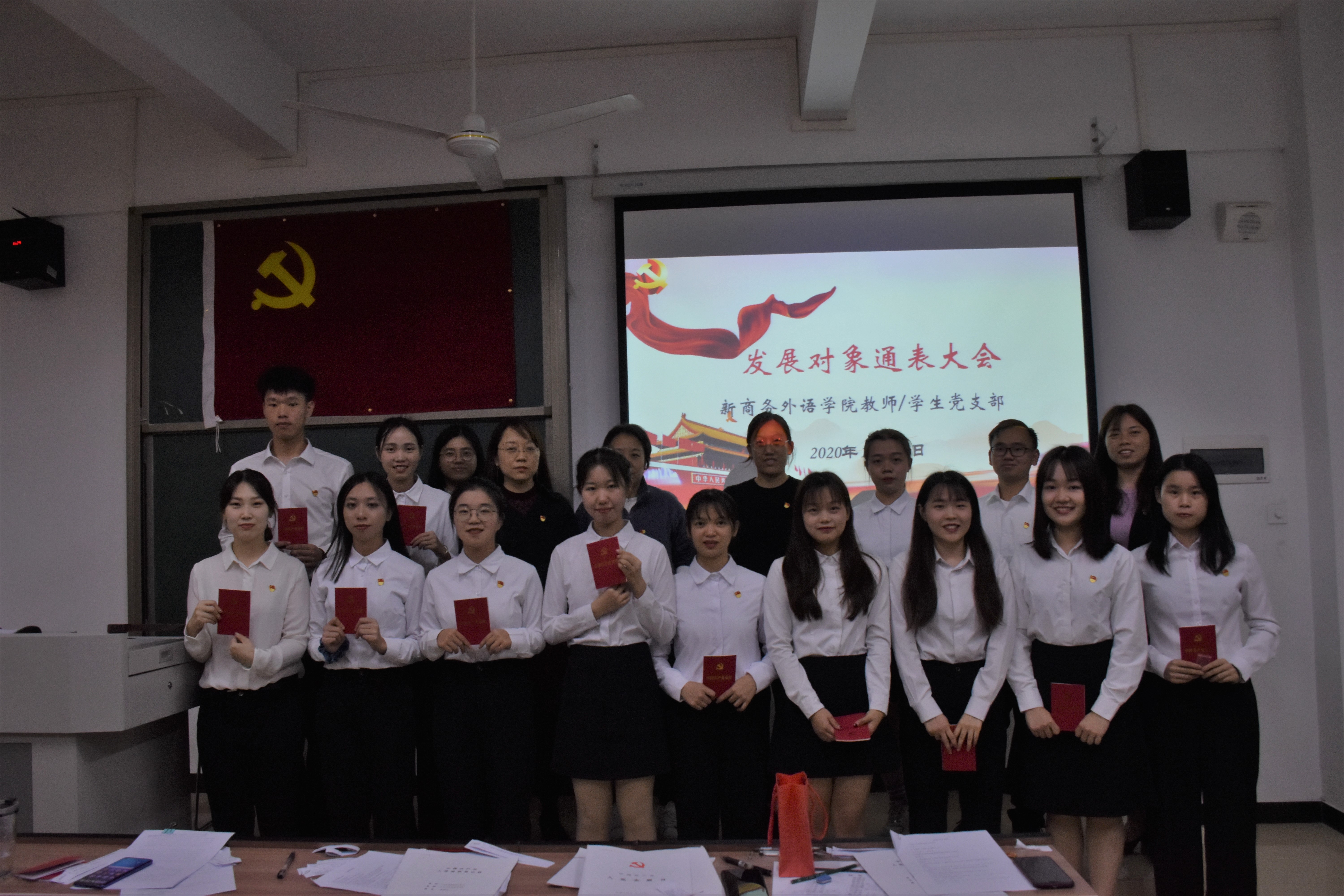 2020年12月11日中午15:30,新商务外语学院教师党支部、学生党支部在白云校区教学楼2-303召开召开发展对象通表大会,教师党支部及学生党支部全体师生党员参加会议。本次会议由学生支部冯晓欣书记主持。