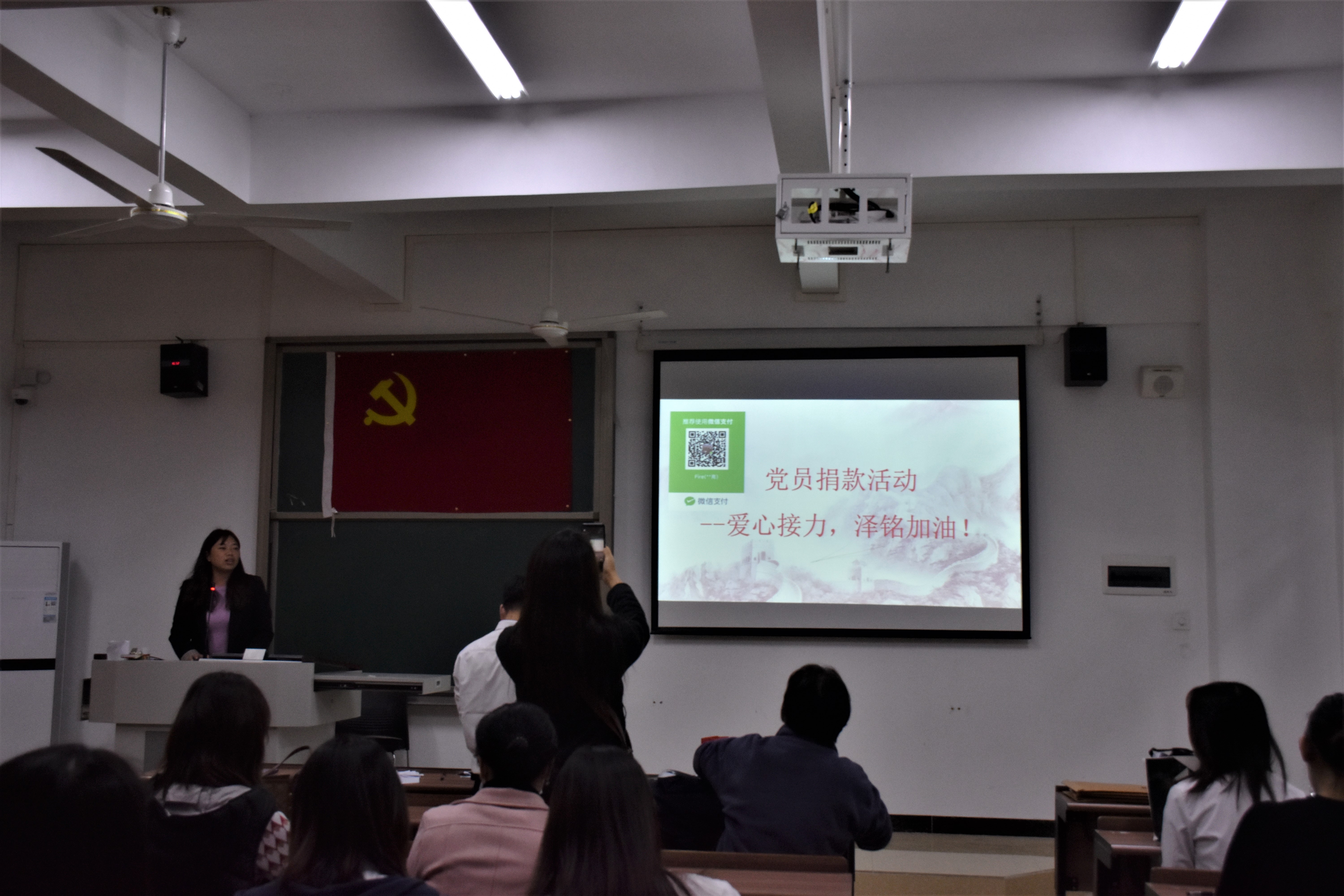 会议最后,在党总支江金霞书记的组织下,全体党员为病重的2020届校友郑泽铭同学捐款,一方有难,八方支援!广大党员踊跃参加,用实际行动践行了初心使命,奉献爱心。