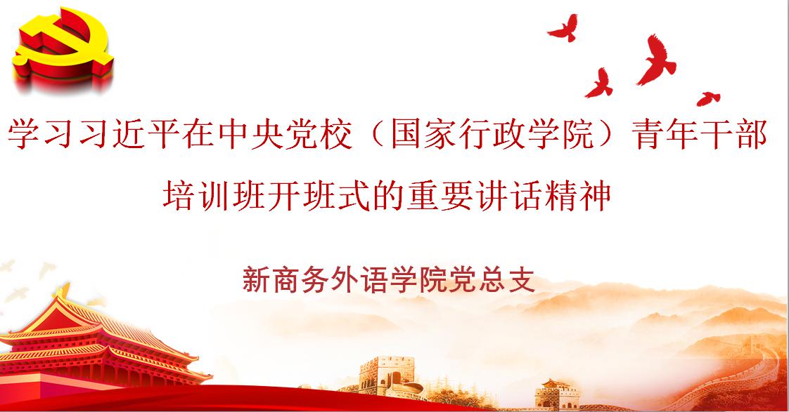 近日,新商务外语学院党总支通过分散和集中,线上线下相结合等方式,组织党员学习习近平总书记在中央党校中青年干部培训班开班式上的讲话精神,重点围绕如何在实际工作中如何提高“七种能力”,如何获得淬炼成长,要求用心用情认真领会习总书记重要讲话精神,做到学以致用。党员纷纷发言,分享学习心得。