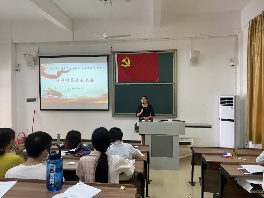 2020年6月18日中午12:30,新商务外语学院党支部在白云校区教学楼1-102召开支部大会,讨论林华一等14位同志的入党问题。出席本次会议的有本党支部全体师生党员。本次会议由院党支部江金霞书记主持。