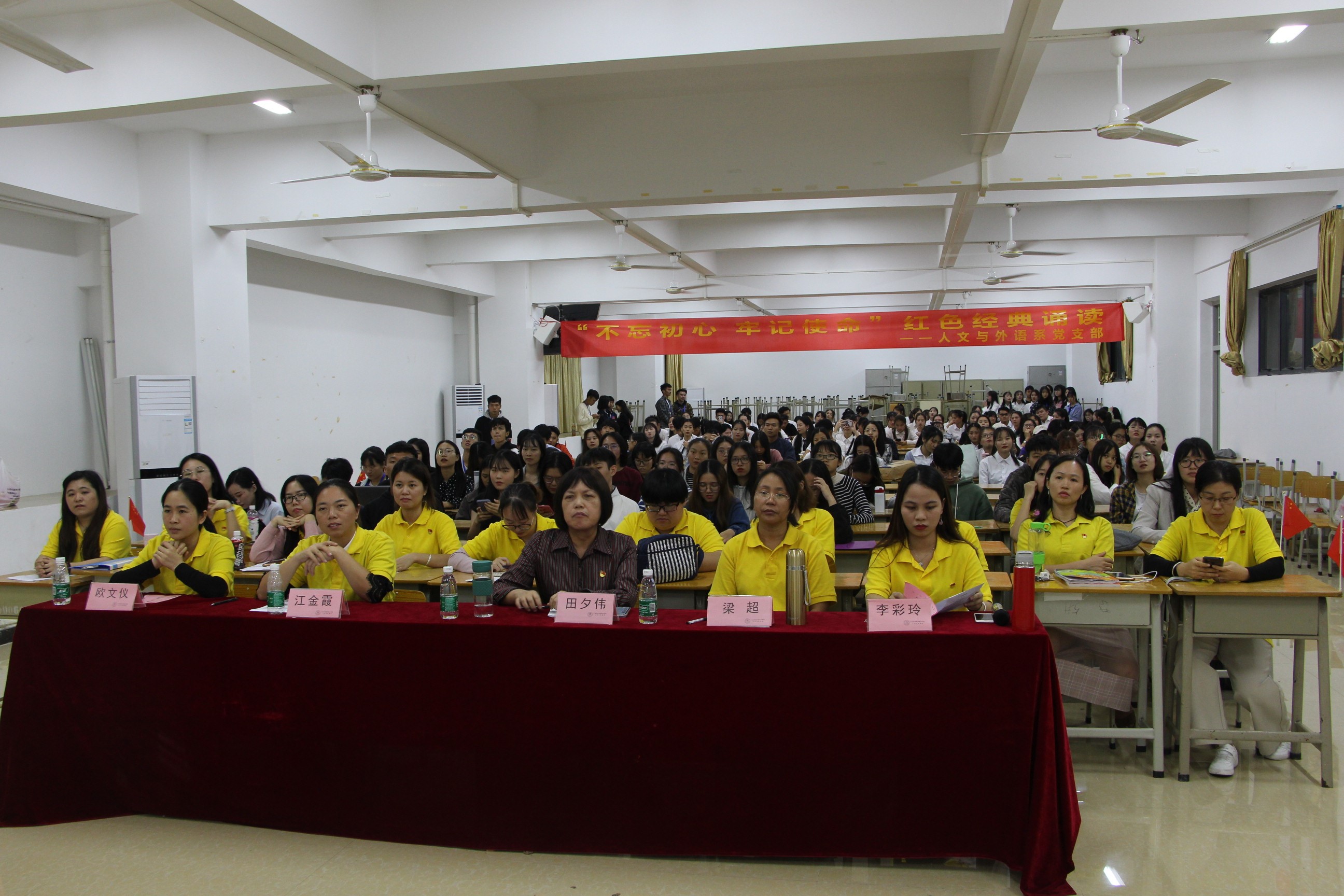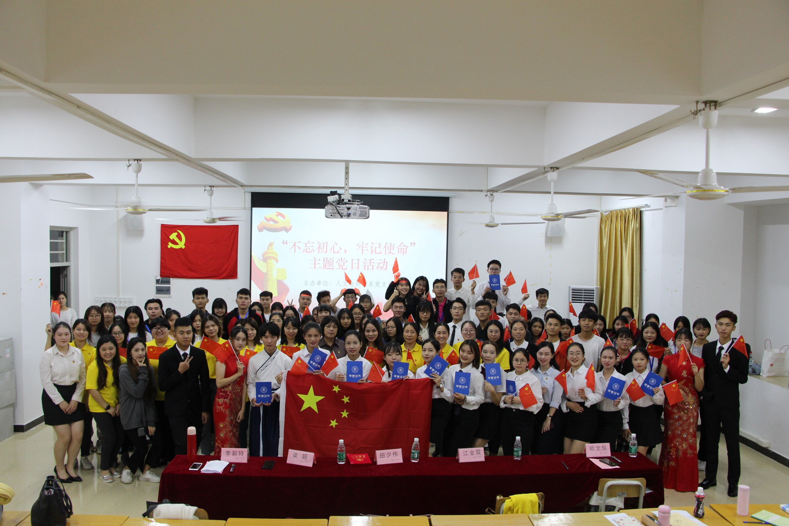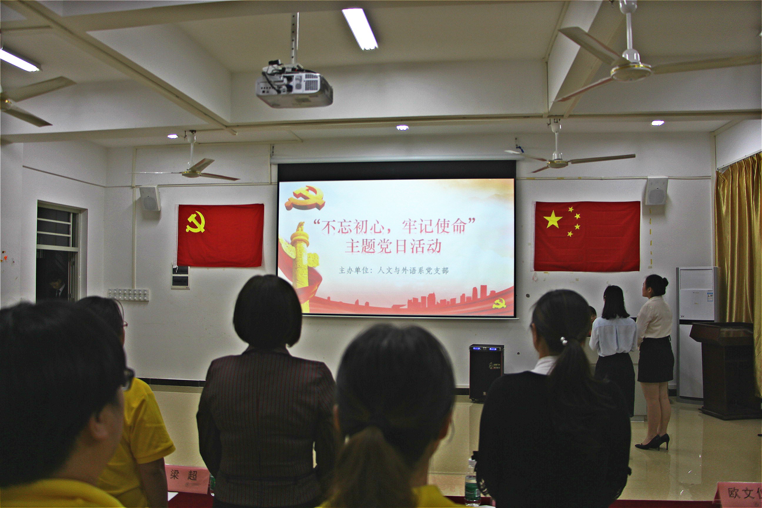 为继续深入开展好“不忘初心、牢记使命”主题教育活动,进一步加强对广大党员和青年的思想教育和价值引领,激发爱国热情,坚定“四个自信”,凝聚奋进力量。人文与外语系党支部于10月31日在白云校区1-315开展“不忘初心、牢记使命”主题党日活动。党支部师生党员、入党积极分子参加活动,会议由党支部吴莉和陈彦霈主持。