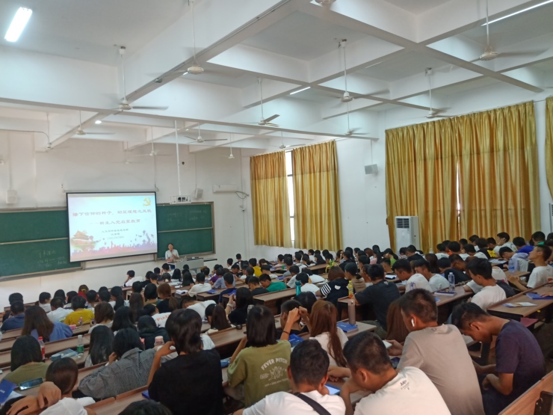 为进一步激发我院新生的爱国爱党热情,引导广大新生正确看待入党问题,详细了解入党流程,积极向党组织靠拢,新商务外语学院党支部于2019年9月27日分三批次为新商务外语学院及人工智能系全体2019级新生开展了入党启蒙教育。本次入党启蒙教育课由新商务外语学院党支部江金霞书记主讲。