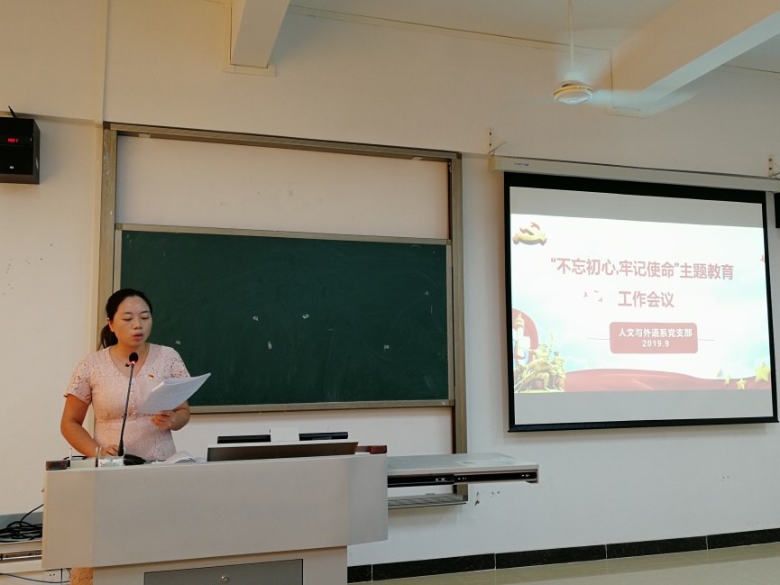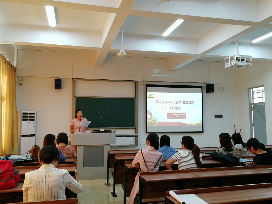 为贯彻落实中央、省委和省委教育工委要求,根据《中共广州华南商贸职业学院委员会“不忘初心、牢记使命”主题教育实施方案》,9月26日下午,新商务外语学院党支部在2-202召开“不忘初心、牢记使命”主题教育专题会议,会议由支部书记江金霞主持,支部成员参加会议。