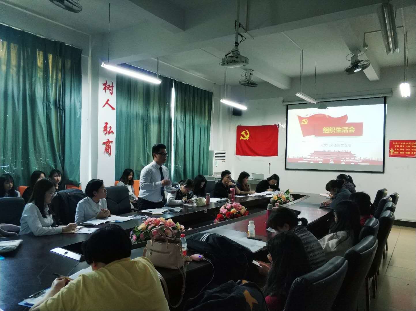 2018年12月27日下午14:30,新商务外语学院党支部组织生活会在20号楼202会议室召开。支部全体师生党员参加了本次组织生活会,会议由党支部书记江金霞主持。