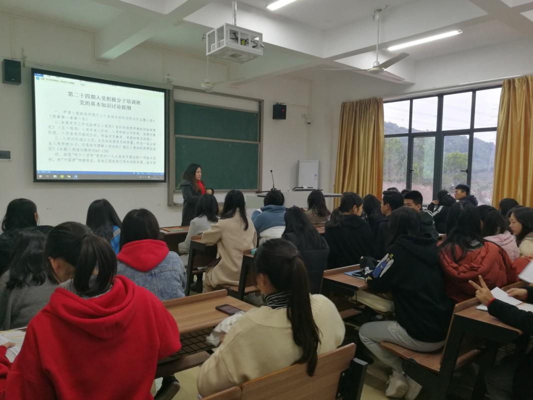 为加强入党积极分子的党性教育,检查他们参与党校培训学习效果,按照中共广州华南商贸职业学院党校第24期入党积极分子培训安排,2018年12月13日我系党支部分别在天河校区实-306和白云校区3-305开展24期积极分子学习讨论活动。活动由党支部组织委员蔡芳芳老师和宣传委员李彩玲老师主持。