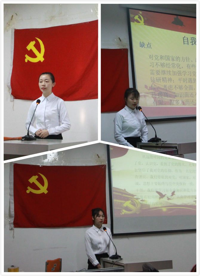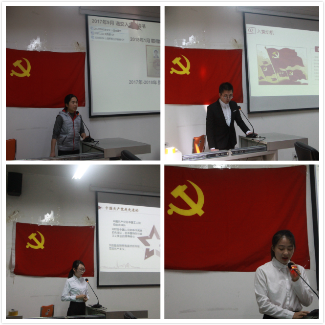 会议开始后,首先,欧文仪等7名发展对象依次上台,向与会人员宣读《入党志愿书》,并介绍其个人基本情况,陈述自身的入党动机、思想情况和经历,并展开深入的自我分析;随后,两位入党介绍人针对发展对象在政治、思想、学习、生活上的表现给予客观的评价,针对其需要改进完善的地方,提出了诚恳的建议;接着,组织委员向全体党员汇报了申请人政审及群众座谈会情况;接下来,由在座党员进行抽题提问,问题包含了党章、十九大报告、习近平系列讲话精神、时事热点和工作生活等方面,发展对象对相关问题进行答辩;与会的党员同志也进行了充分的讨论,认为发展对象入党动机端正,能严于律己宽以待人,具有良好的群众基础,在工作、学习方面能起到模范带头作用,但在政治理论方面还需加强学习;大会采取无记名投票表决,同意批准欧文仪等7位发展对象发展成为中共预备党员;各发展对象对组织的认可表示感谢,并表明决心:积极学习、努力工作,愿意接受党组织的考察。最后进行了新党员佩戴党徽仪式。