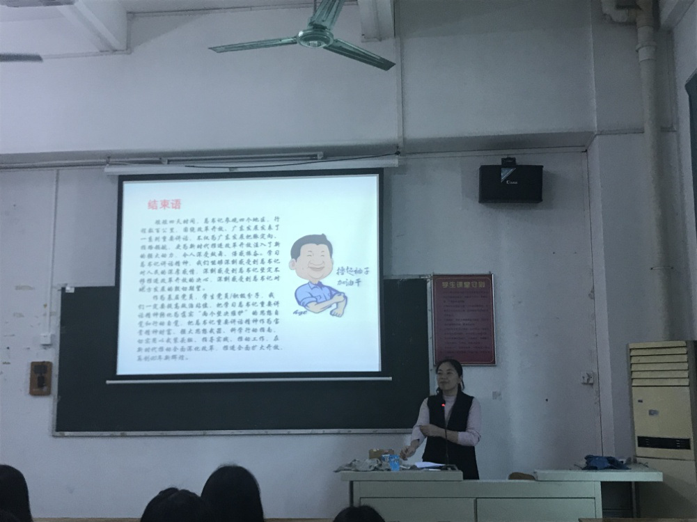 随后,与会人员,结合自身工作、学习、生活的实际谈感受、谈体会, 陈丽戎辅导员结合“多彩乡村,情系故里”的教育实践活动,鼓励大家深入了解乡村历史文化,品味乡村文明魅力,提升文化自信,助力乡村振兴战略;吴媚、欧文仪老师以及潘媚同学从不同角度谈到了提升专业技能,培养创新意识的重要性,强调在广东发展的新时期身在广东既要有抓住机遇的敏锐又要迎接挑战的勇气。