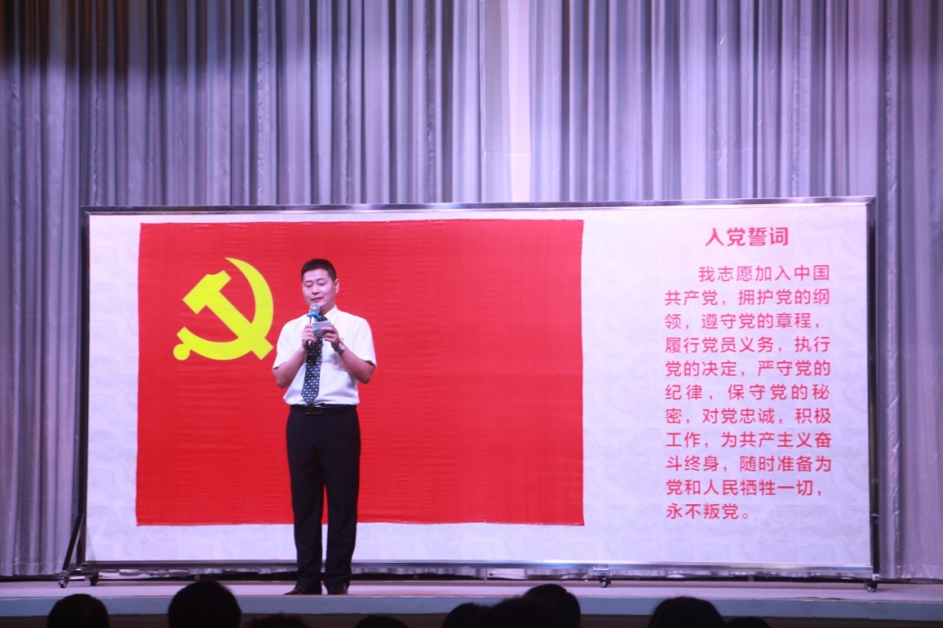 活动以观看《习近平总书记参加2018年全国两会广东团审议是发表重要讲话》专题片开场,接着主持人带领所有人员进行了入党宣誓,随着“我志愿加入中国共产党,拥护党的纲领,遵守党的章程……”的誓词声响起,全体参加活动的党员面向鲜红的党旗,举起右手、紧握拳头,重温入党誓词,庄严宣誓,再一次接受党性的洗礼。其后全体党员在主持人的带领下重读了《中国共产党章程》总纲中的文段,使全体党员更加牢记中国共产党的初心和使命,切实用习近平新时代中国特色社会主义思想和党的十九大精神武装头脑。