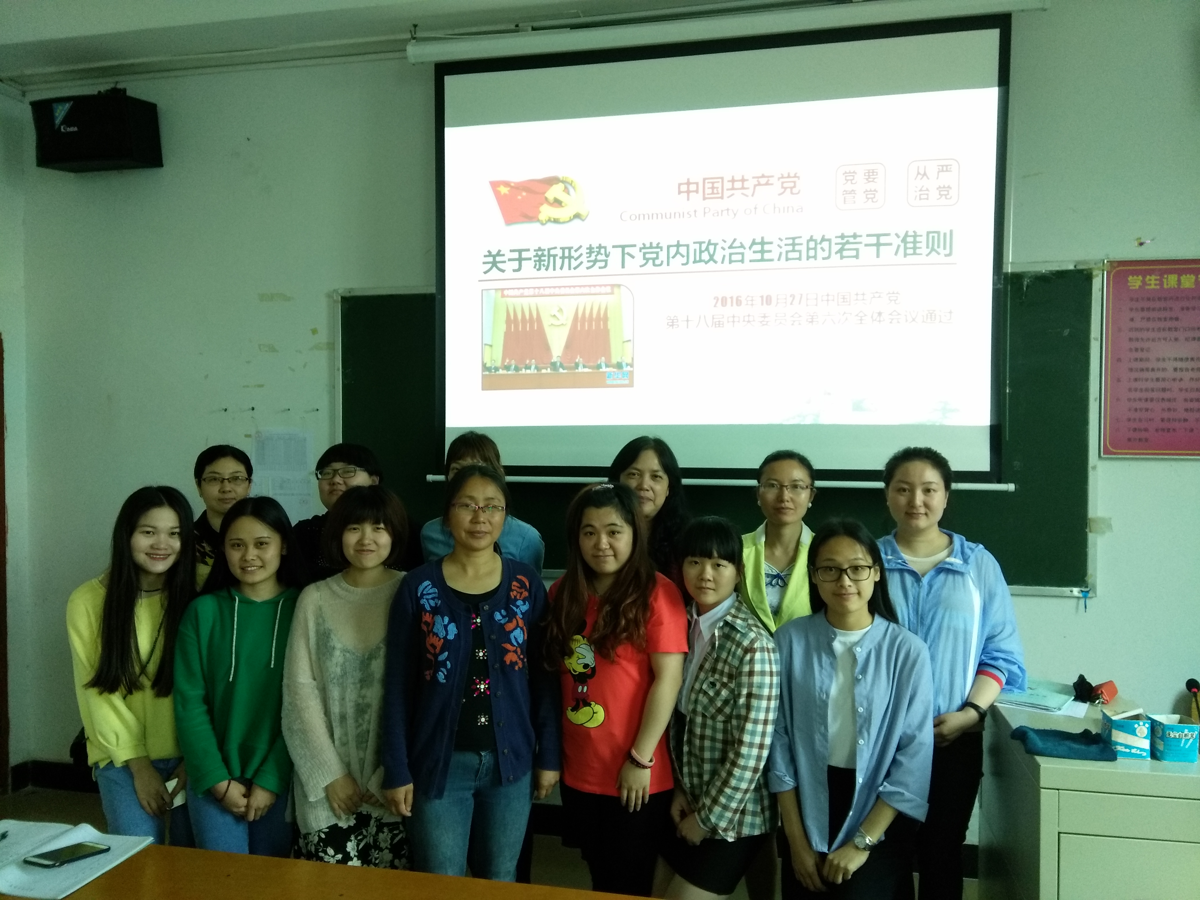 2017年4月27日下午,人文与外语系党支部在商英楼306组织了全体党员同志认真学习了《关于新形势下党内政治生活的若干准则》,人文与外语系党支部书记周鸽组织了学习会议。