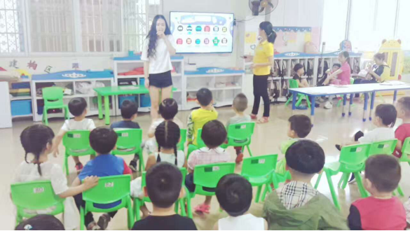 一走进幼儿园,就可以感受到很活跃的气氛,听到小朋友们嘻闹的声音。小朋友们都非常热情地欢迎我们的到来,今天我们主要是教小朋友们认识英语单词,唱英文歌,并且与他们一起玩游戏等。小朋友们认真学习的画面很温馨,在学习的过程中,小朋友们争先恐后地举手回答问题,玩游戏,课堂上都是活跃的气氛,大家脸上都露出了灿烂的笑容,在整个过程中,我们的志愿者与小朋友们相处得很愉快!