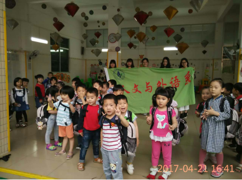 为深刻开展习总书记“一学一做”教育实践会议精神,全面推进改革攻坚,从严治团各项工作,广州华南商贸职业学院人文与外语系于2017年4月21日(星期五)下午在党支部的带领下,来到长兴街道附近的小宝贝幼儿园进行义教志愿服务活动。