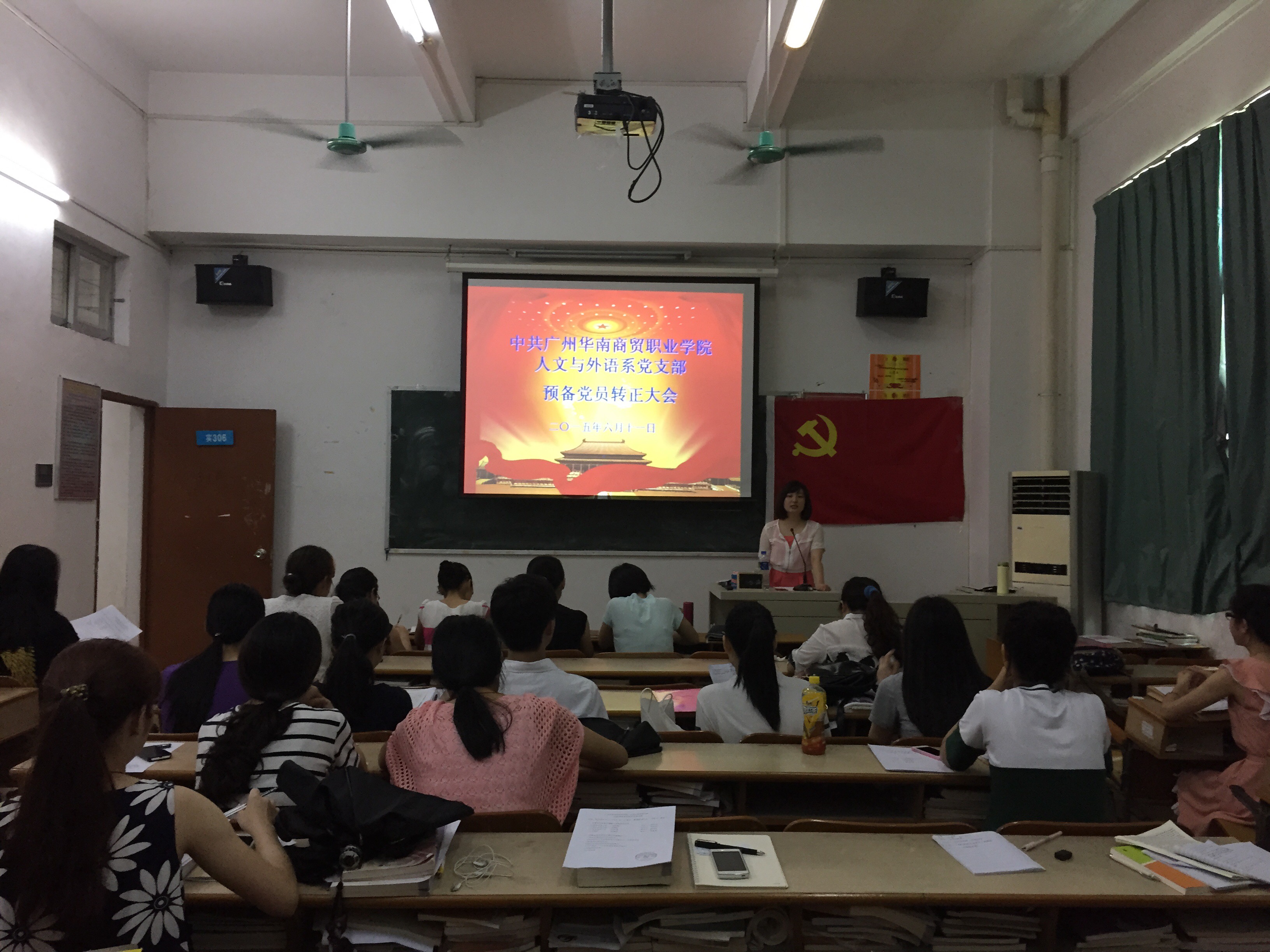 6月12日中午,新商务外语学院党支部在商英楼306教室召开了新商务外语学院党支部预备党员转正大会。本次会议主要讨论了我支部刘晶晶等4位同志的转正问题。我支部正式党员28人,应到28人,实到24人,符合预备党员转正讨论的程序要求。