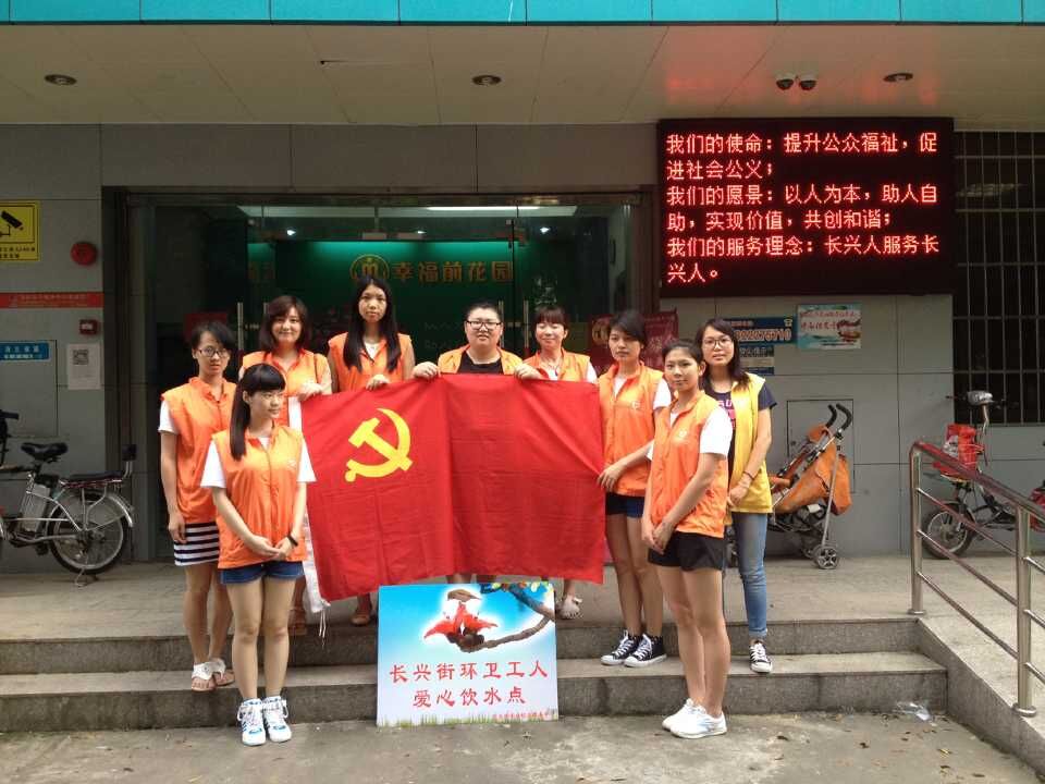 5月14日下午,新商务外语学院党支部周鸽书记带领系团总支陈丽戎书记、袁兰艳老师及五名学生代表前往长兴街家庭综合服务中心参加了“环卫工人爱心饮水点”商家挂牌仪式。