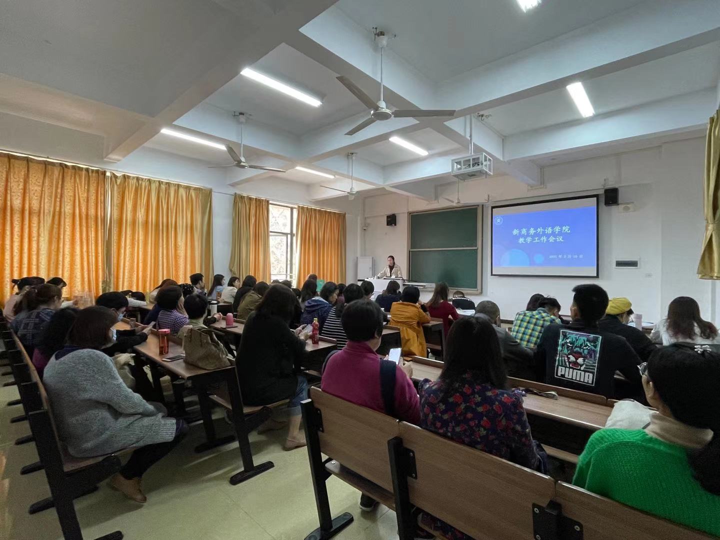 2021年3月10日,我院在教学楼3-202教室召开教学工作会议暨2018级顶岗实习推进会,新商务外语学院全体教师出席本次会议,田夕伟院长负责主持会议。
