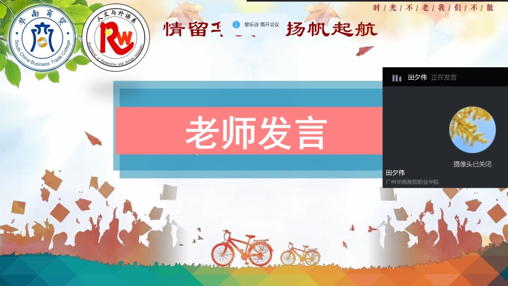 7月2日晚上,在毕业生离校之际,新商务外语学院在钉钉平台,举办了一场别开生动的线上师生座谈会,田夕伟院长,院党支部江金霞书记,支部党员教师、辅导员、毕业生代表及18级/19级学生代表参加会议。座谈会由江金霞书记主持。大家畅谈成长感悟,共话难忘校园时光。