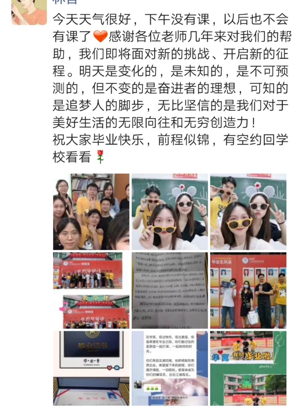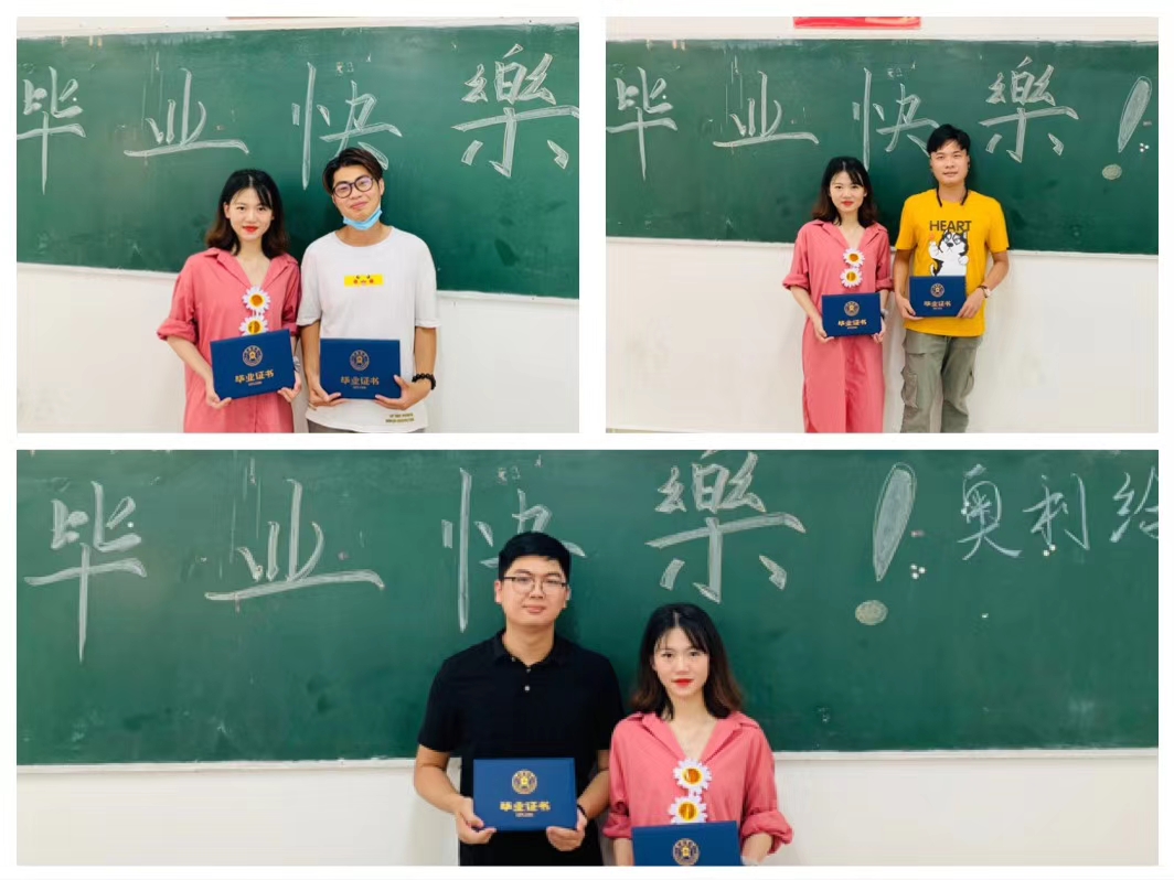 辅导员蔡芳芳、陈丽戎老师对毕业生的成长的表示欣慰,希望同学们心怀梦想,认真过好每一天。