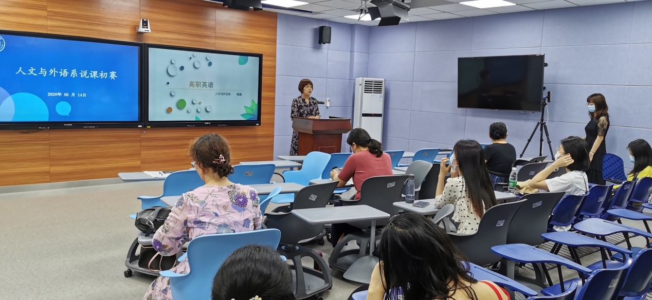 为响应学院迎接评估的号召,提升教师的教学能力水平,新商务外语学院在全系范围内开展说课比赛。5月15日,我系在1-215录播室举办了本次比赛的第一场初赛,参赛教师均来自高职英语教师团队,出席本次比赛的评委有新商务外语学院院长田夕伟,商务英语教研室主任李艳春老师。此外,本次比赛还邀请了1名校外评委——广州城市职业学院应用外语系罗冬梅教授。停课不停学,为了让更多老师观摩此次比赛,本次说课比赛还通过钉钉平台进行实时直播。