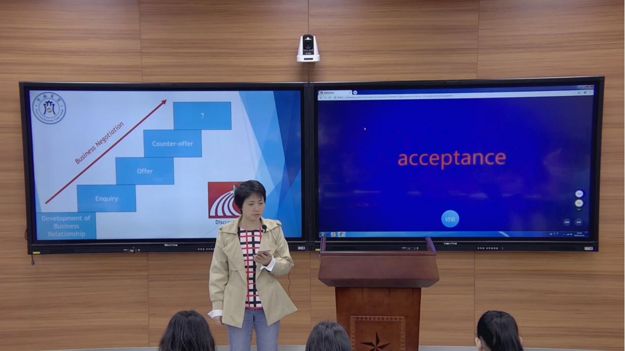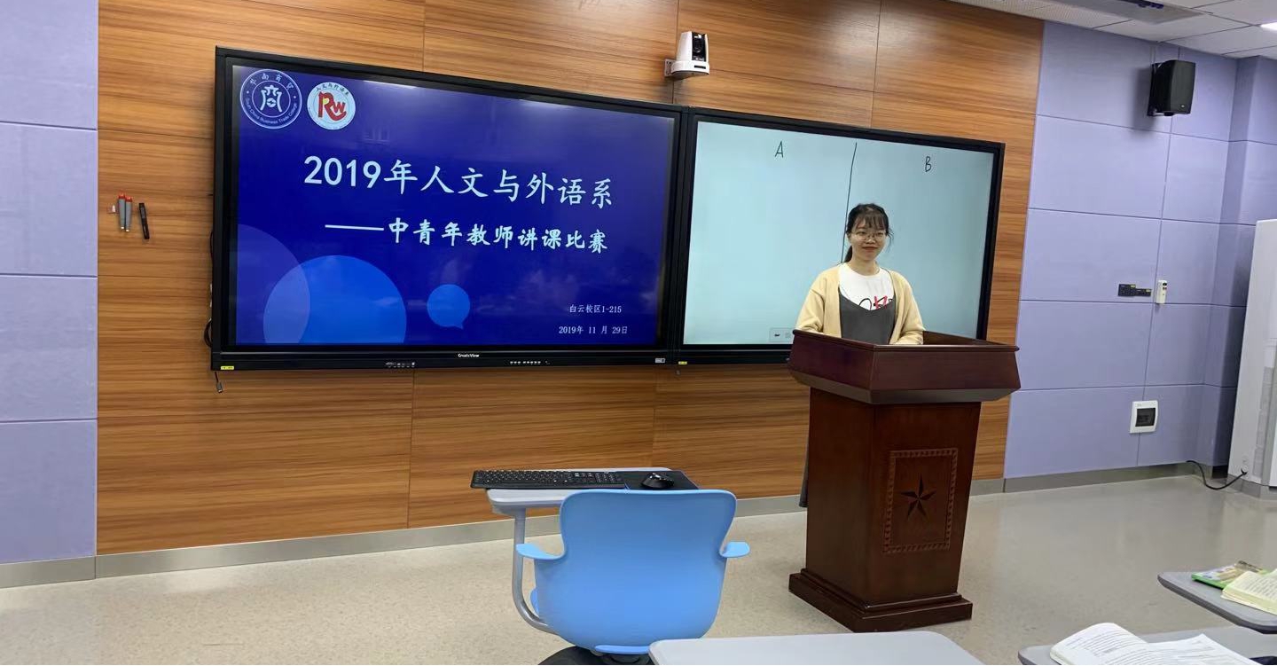 为了响应学院提高中青年教师的教学水平和教学能力的号召,新商务外语学院于2019年11月29日在1-215录播室举行了中青年教师教学能力比赛。经教研室推荐与系部遴选,一共有六位中青年教师入围本次比赛,她们分别是:李东卫老师,张亚岚老师,梁玉涓老师,田婷婷老师,欧文仪老师,彭婷婷老师。新商务外语学院院长田夕伟与大学英语教研室主任隆婕老师出席了本次比赛,并担任本次比赛的评委。