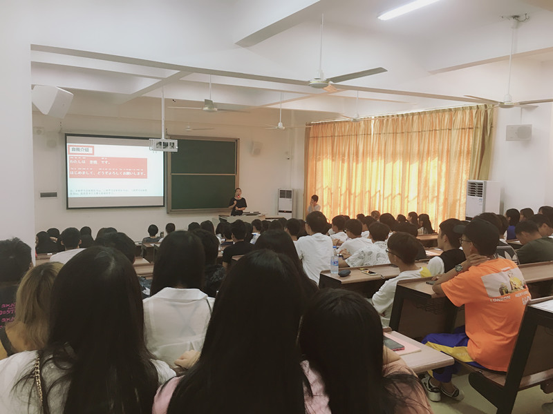 为使我系新生快速地适应大学学习生活,充分了解自己所学专业,明确大学目标,有效的开展专业学习,9月27日我系田夕伟主任、邓秋英副主任、各教研室主任及骨干教师在2018级商务英语专业、商务日语专业、旅游管理专业、酒店管理专业、会展策划管理专业、文秘专业、网络新闻与传播专业开展了入学教育之专业介绍活动。