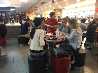 在琶洲展馆B馆麦当劳,老师们一行和麦当劳经理进行了简单的交流。经理表示,实习学生表现良好,在实习工作中能吃苦耐劳,能以一个职业人的标准表要求自己,公司对学生的综合素质和各方面表现都满意,希望以后能够继续深入地开展校企合作。