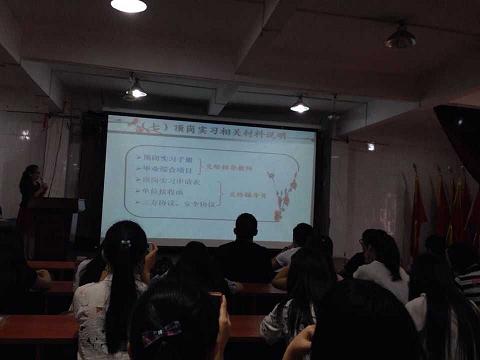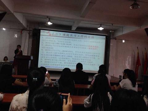 首先,由吴媚老师对实习的工作进行部署,她为同学们指明了实习的目的及意义,阐明了实习的内容及要求,说明了实习成绩的评定方式,同时强调了同学们的安全问题,提醒同学们在实习过程中谨防受骗,要时常保持和学校的联系。